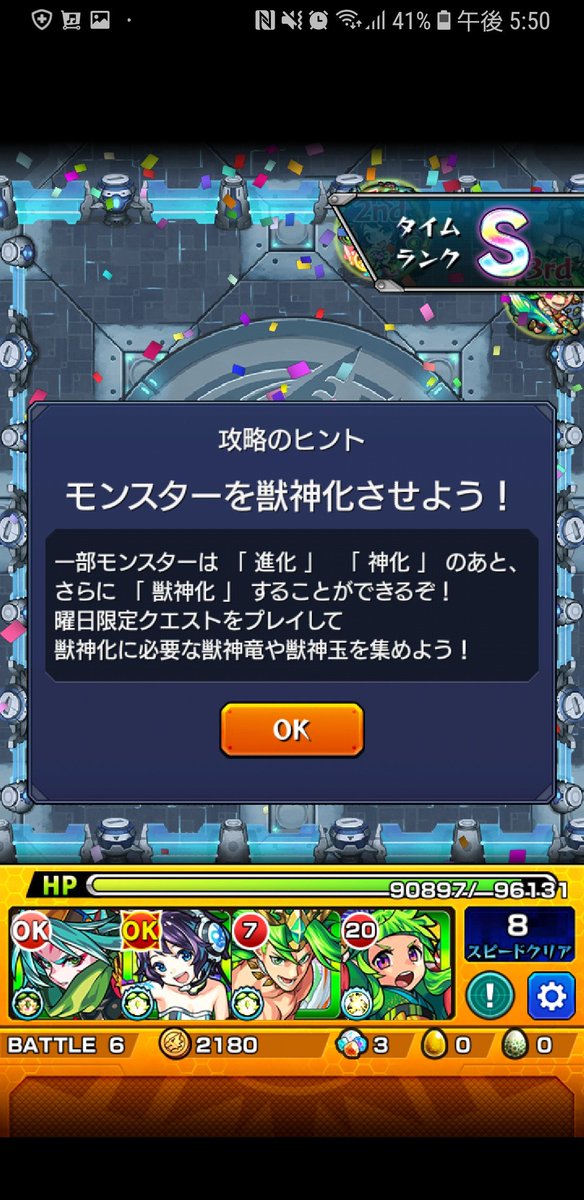興奮のスタジアム両方ともSランク実を入れてなんとかクリア!黒陽の蛇王関してはアリスでごり押し、ハーレーは爆発持ちでマイスイの採用した。