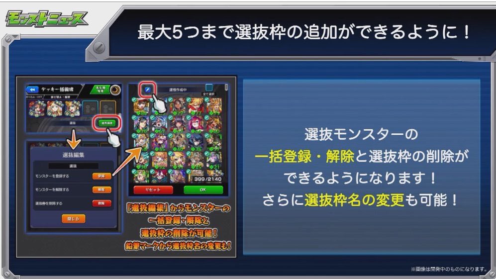 今回のモンストニュースは、サキュパスも新キャラも気になるけど、、一番嬉しかったのは選抜枠が5つになること!