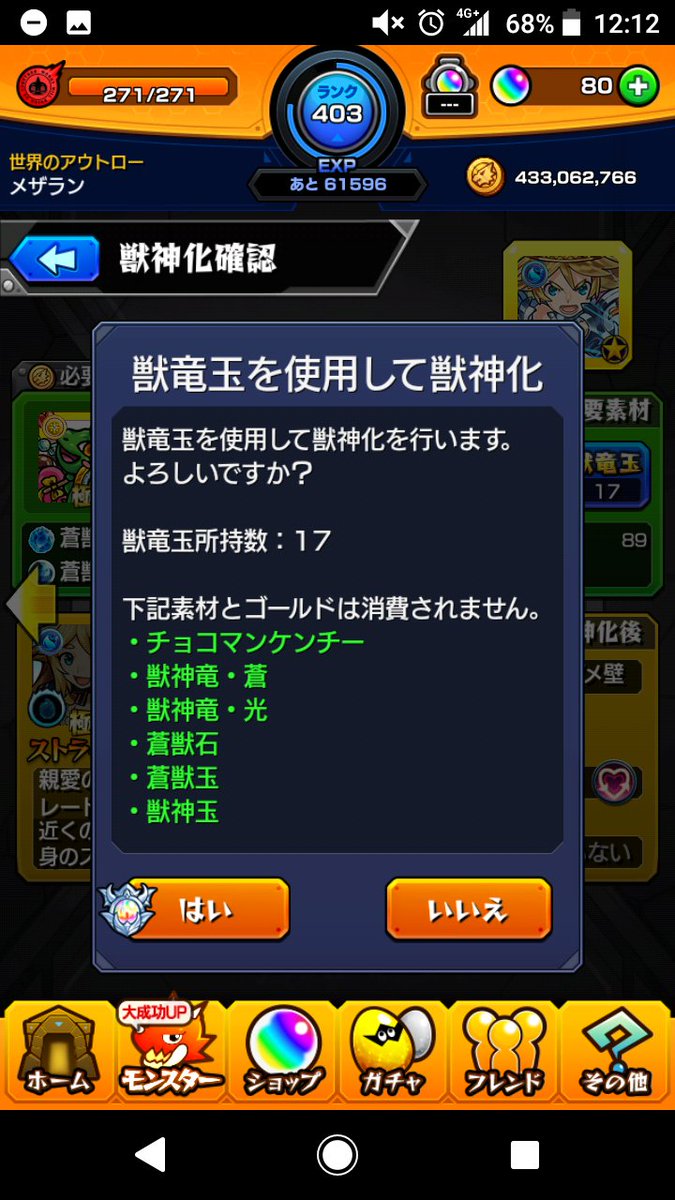 今噂になってる獣神化はアテナの時みたいにこの子が素材!?ようやく使える(*´∇`)ノ
