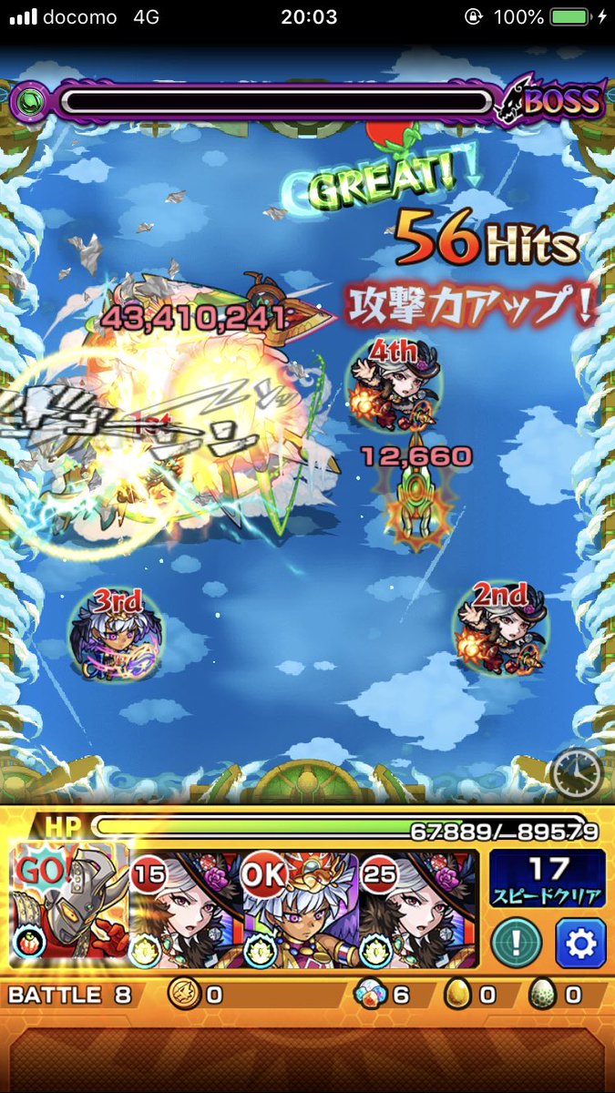 サキミタマクリア〜^_^ワルプルギス獣神化で楽になるのかな〜、トライブパルスの地味な被ダメを抑えるためにウルトラマンタロウを引っ張り出してきたのは自分だけではないだろう #モンスト pic.twitter.com/bD2DKK8D7H