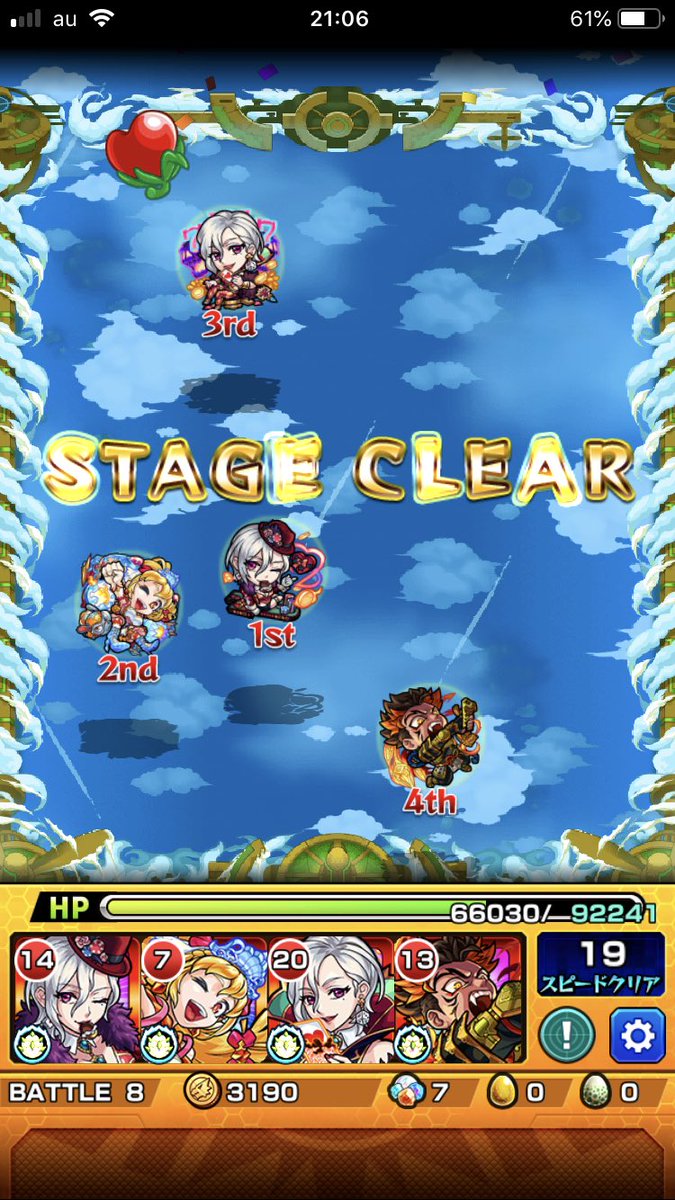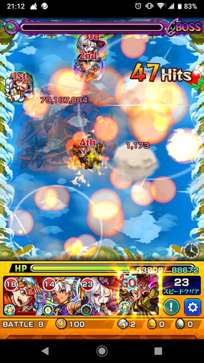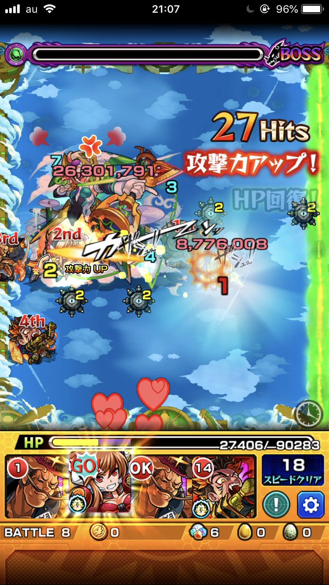 久しぶりに挑戦してみたら何度も瀕死になりながらも3回目くらいで勝てた。オオサカのおかげ。集合SSはボス2で渋々使ったけど、地味に恩恵が長続きしてくれた。 pic.twitter.com/nE9XK3HApJ