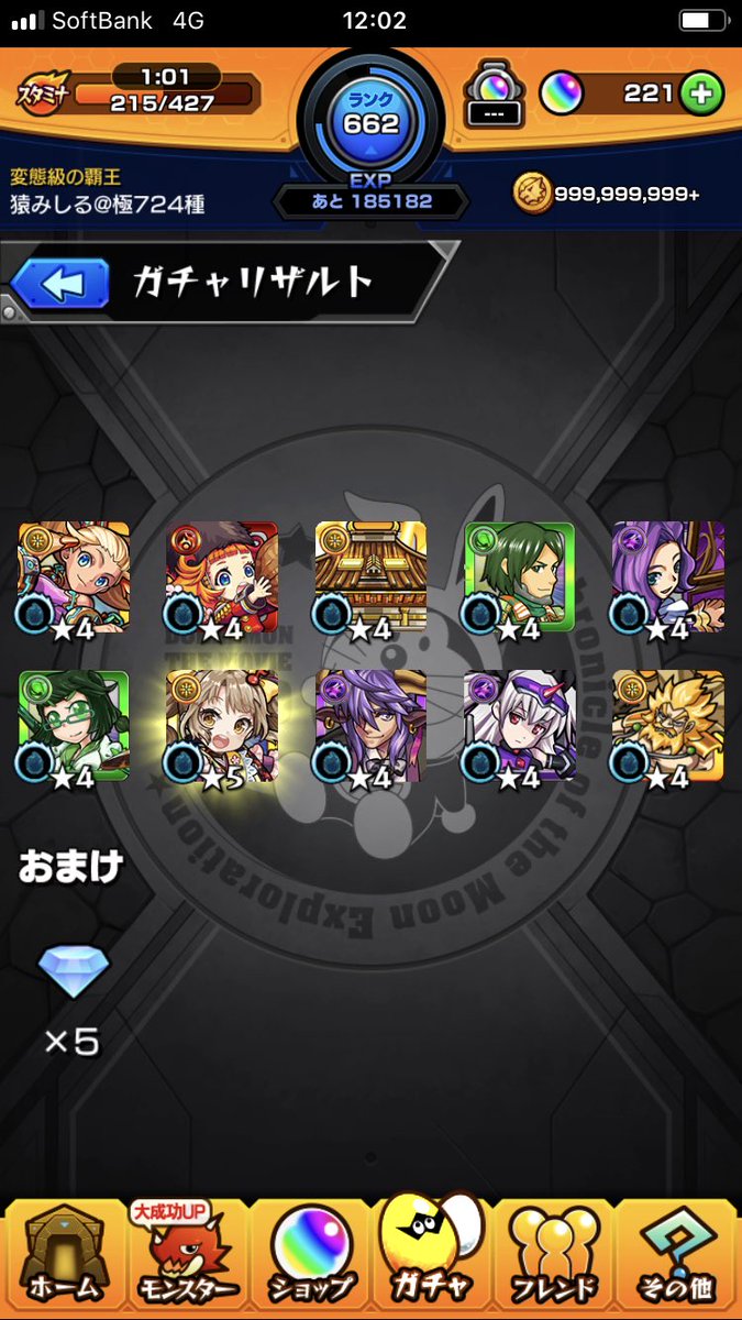 メイン機なんか石780あって星玉49スタートだったのに終わったら★5のゴミが9体しかいなかった(キッドとかマッドハッターとか)