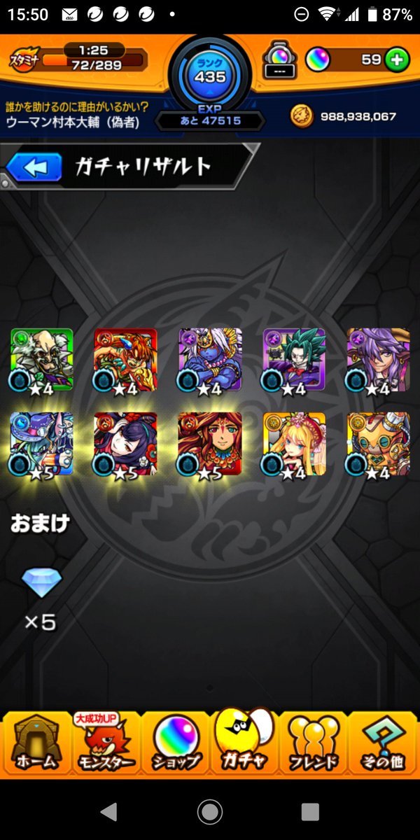 3万課金だと525個だっけ?たった105連しかできないけど4垢で塔登れるようになれば無課金でも合算300連近くできてモン玉も4回引けちゃうからなキャラの集まり方違う