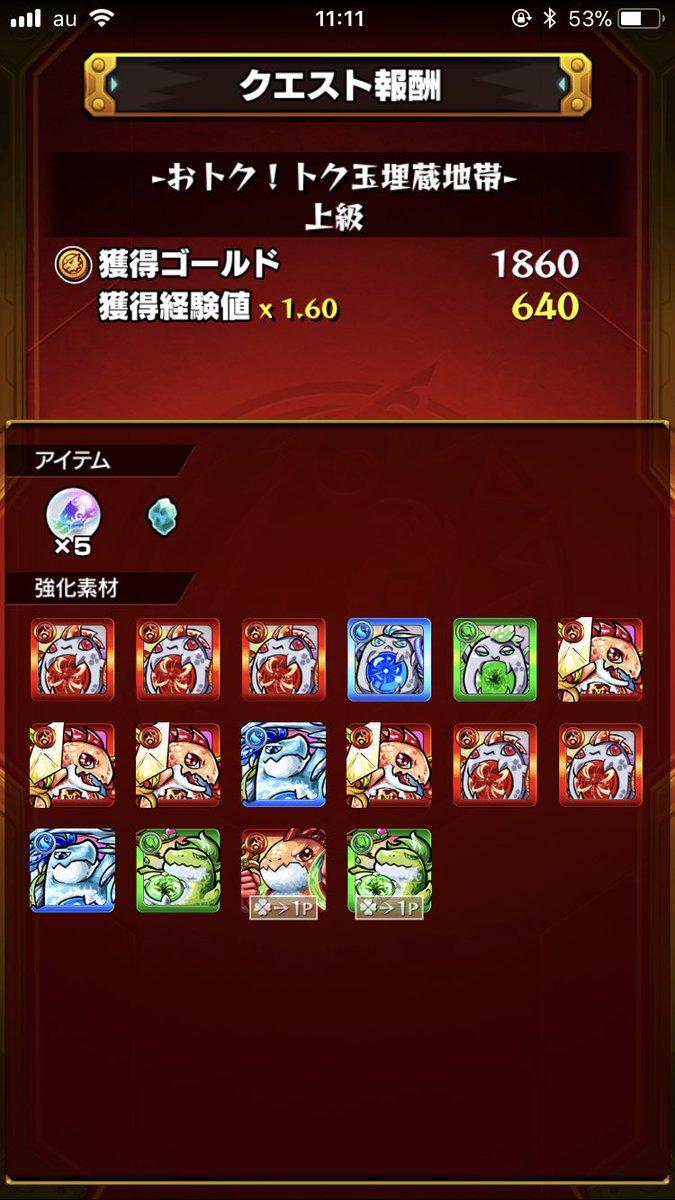 前回のトク玉排出クエの時に1回だけ4個あったな