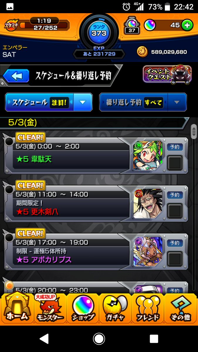 藍染さんスケジュールの空きか…成る程、明日からやろう、モンストの日が一番効率良いけどさ、ご飯