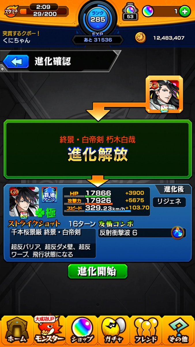 朽木白哉運極です!(*`・ω・)ゞそして進化解放!