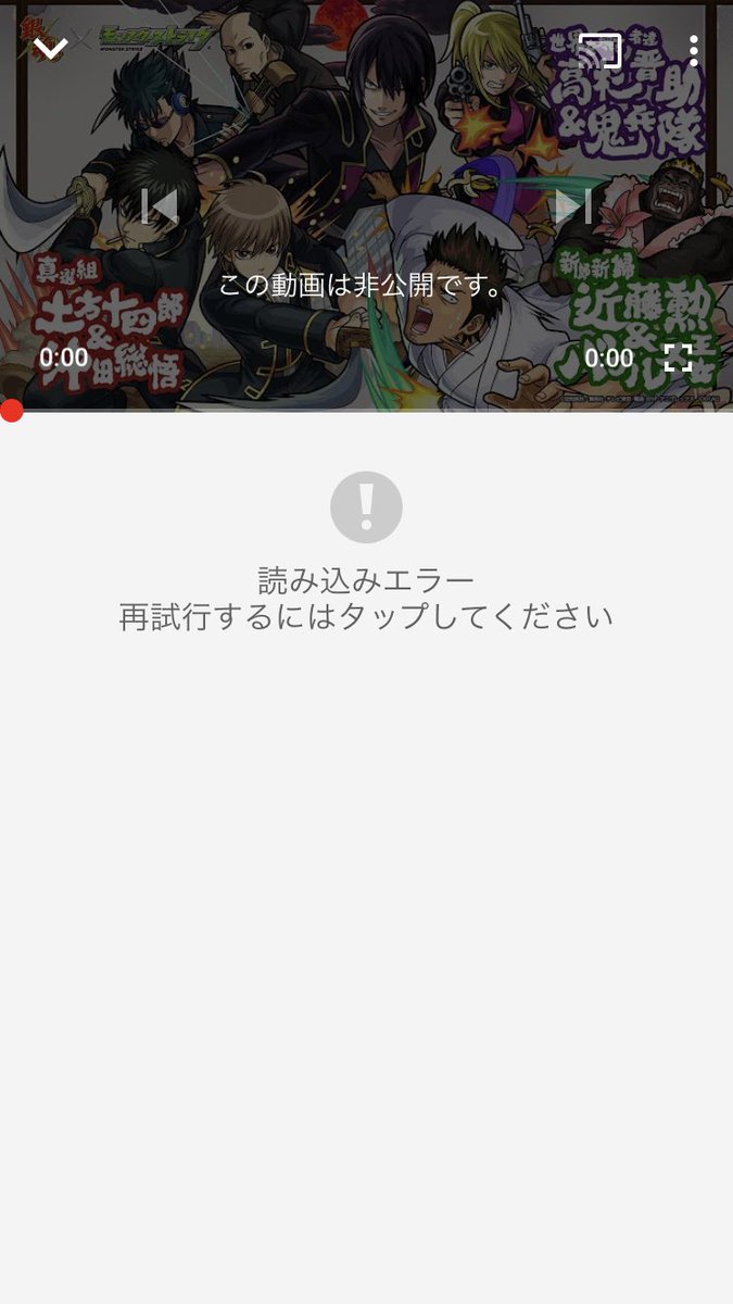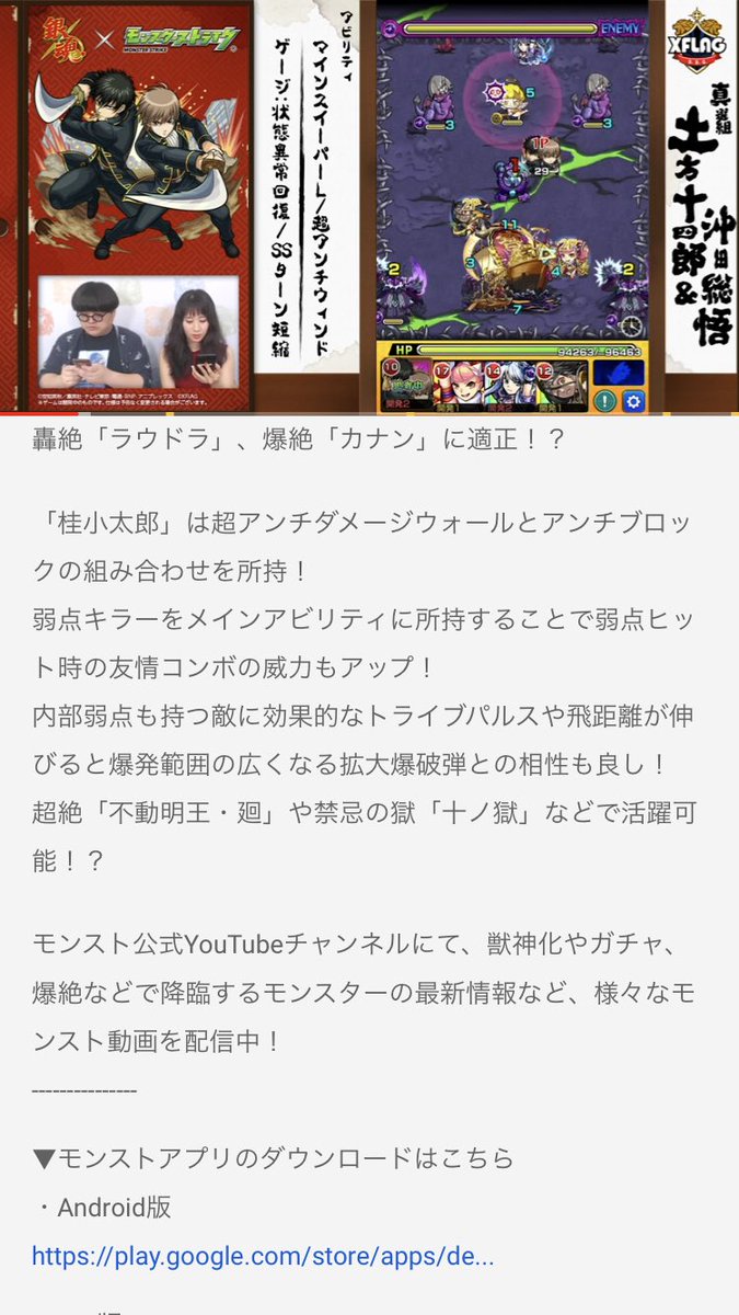 8月30日の公式の検証動画のタイトルミスが発生!高杉・沖田&土方、近藤の獣神化検証動画を投稿したが、タイトルに『【アニメ「銀魂」コラボ第2弾】坂田銀時、神楽、桂小太郎が獣神化!オリジナルSSや広範囲友情コンボなどを所持し高難易度クエストで活躍!?』と誤って明記されています。