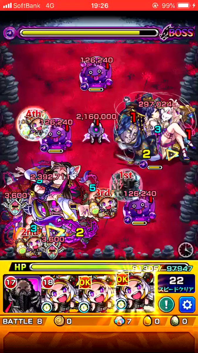 次はメタトロンαを使いますが、そうなるとサンちゃん(神化)使わない訳にはいかないし、ミッキーは抜けないしで編成も悩むところ。