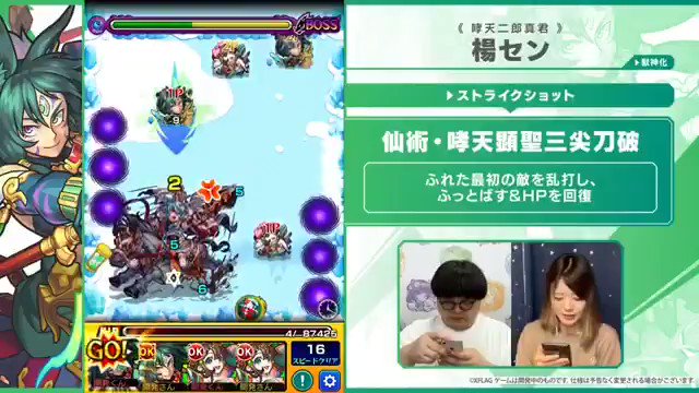 「哮天二郎真君 楊セン」!35123の高い攻撃力と超マインスイーパーを所持!サムライキラーMを持ち、サムライ族に対して圧倒的なダメージが期待できる!ふれた最初の敵を乱打し、ふっとばす&HPを回復するSSは、敵へのダメージと自陣のHP回復の両方が狙えて便利! #モンスト pic.twitter.com/weqmyIZGEz