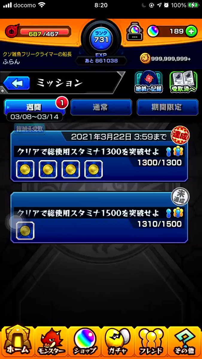 ミッションの達成報酬の一部に不具合が発生しており、現在調査中です。なお、ミッション達成後、未受け取りの方は、受け取らないようお願い致します。調査完了次第、改めてお知らせ致します。この度はご迷惑をおかけし、大変申し訳ございません。 #モンスト