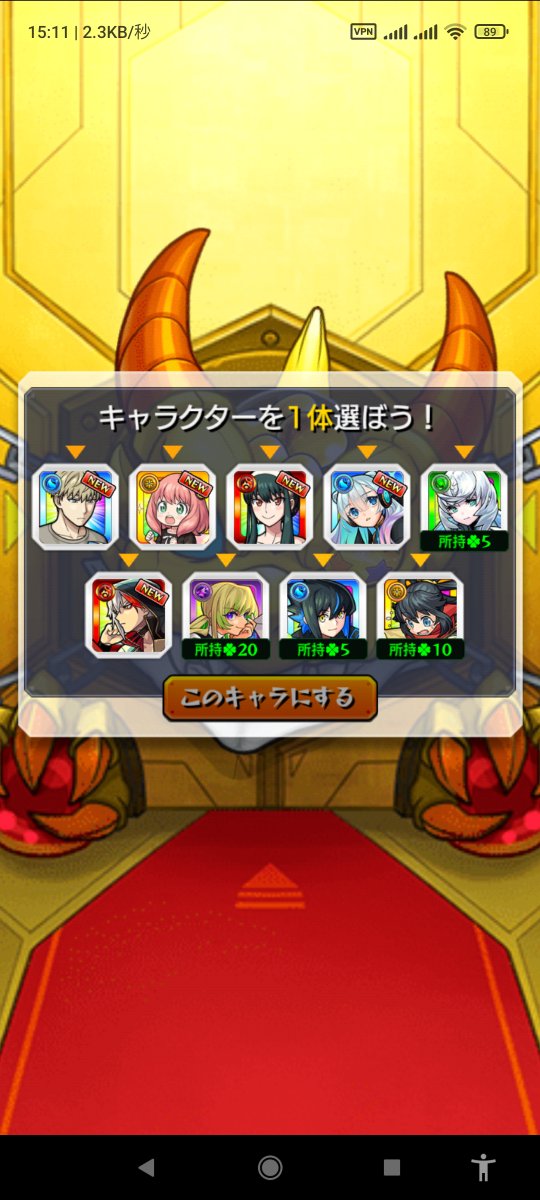 モンストの星玉で初めてキュピーン演出キター!!アーニャが好きでめっちゃ迷ったけど、性能的にヨルにしました。ありがとう、星玉✨コラボ中じゃなければネオ一択でしたが。。。
