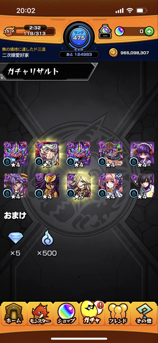ミッドナイトパーティ70か80引いてなんも出んかったカエサルとtoforだけ