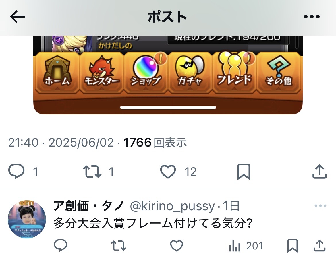 362: モンスト@ニュース速報 2025/06/08(日) 11:34:21.61